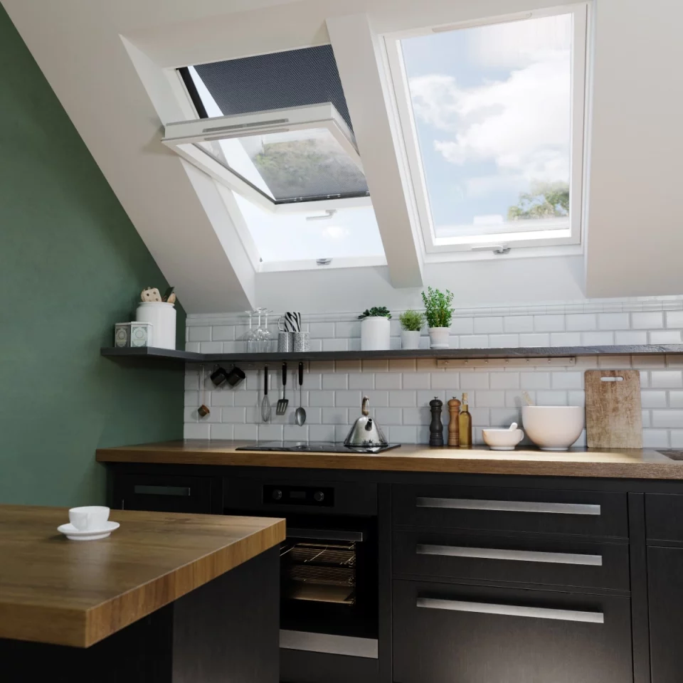 The Better Energy PVC range features a three pane system to improve thermal efficiency. The PVC frame protects against damage from moisture. It’s an ideal roof window for kitchens and bathrooms.