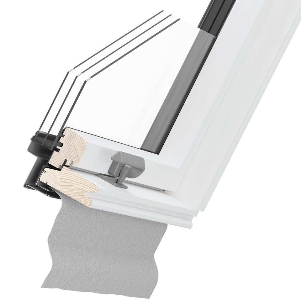 The Dakea Better Energy roof window features a three-pane, two-chamber design with a central rotation axis, providing superior insulation for living areas.